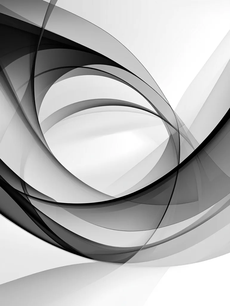 - An abstract minimalist design with interlocking circles and smooth lines in shades of gray, emphasizing balance and simplicity