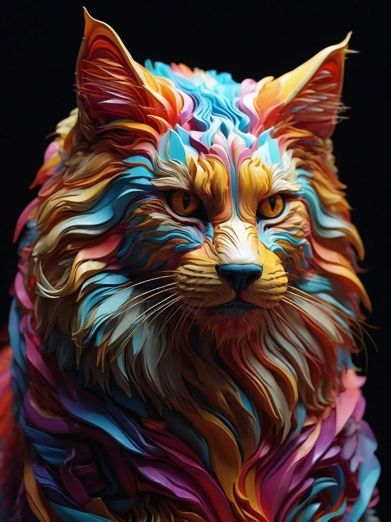 3d vector rainbow-colored wavy fractal neon mainecoon bear, stunning, beautiful, eye-catching, masterpiece